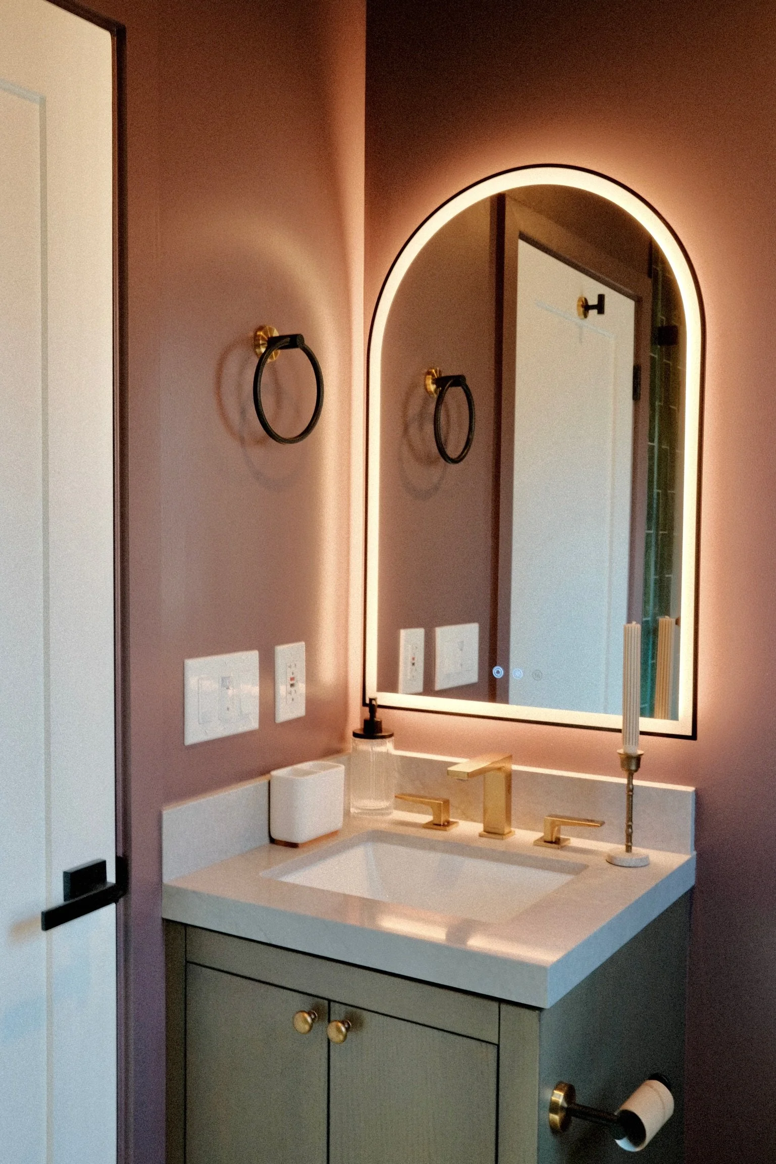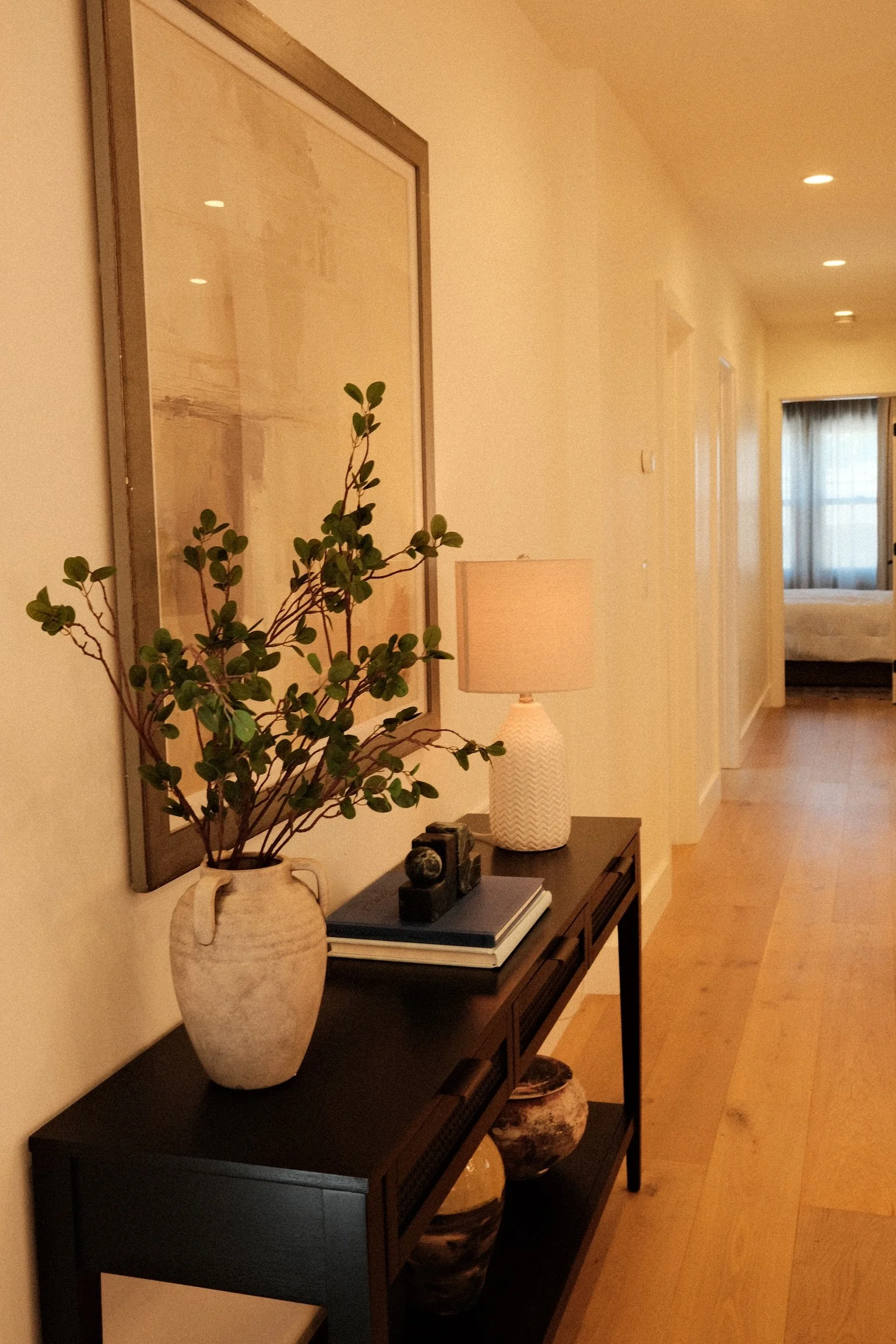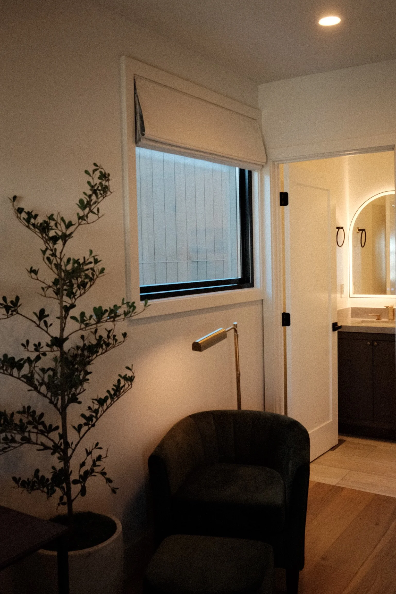 The curated blend of heritage and modern restraint. We layered custom millwork, artisan tile, natural stone, and sculptural lighting to create a home that feels timeless, tactile, and livable. In the kitchen, dramatic Constentino marble slabs and integrated lighting elevate functionality into form, while the living room centers around a custom plaster fireplace and layered textures. The moody, color-drenched bedroom acts as a cocoon, contrasting the sunlit palette elsewhere. Every material from imported Italian stair tile to handcrafted Zellige in the baths was selected for longevity, soul, and spatial harmony. Designed with a sharp eye and a high standard, this project reflects our belief that luxury lies in intention, not excess.